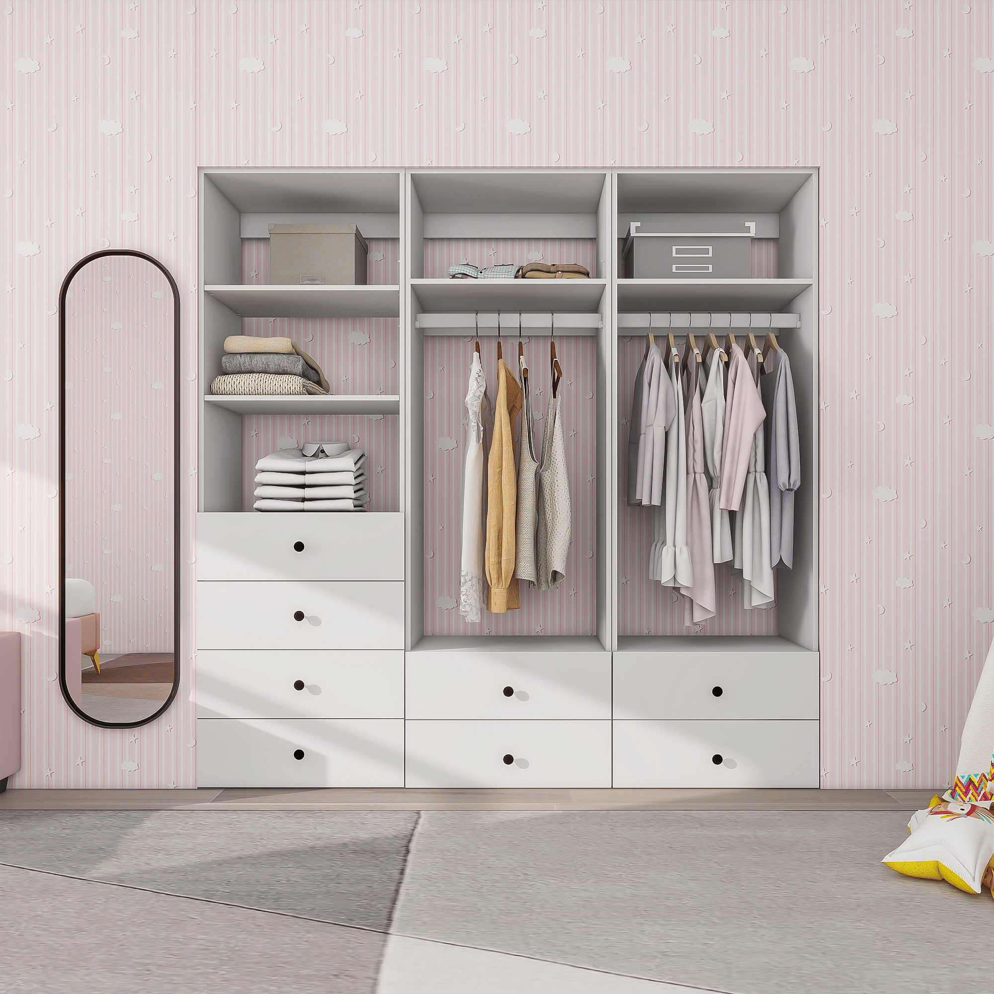Livelylodge Modular Wardrobe Closet - Freestanding White Closet with Spacious Storage Shelves and Hanging Rods 70.86"W x 16.04"D x 70.86"H