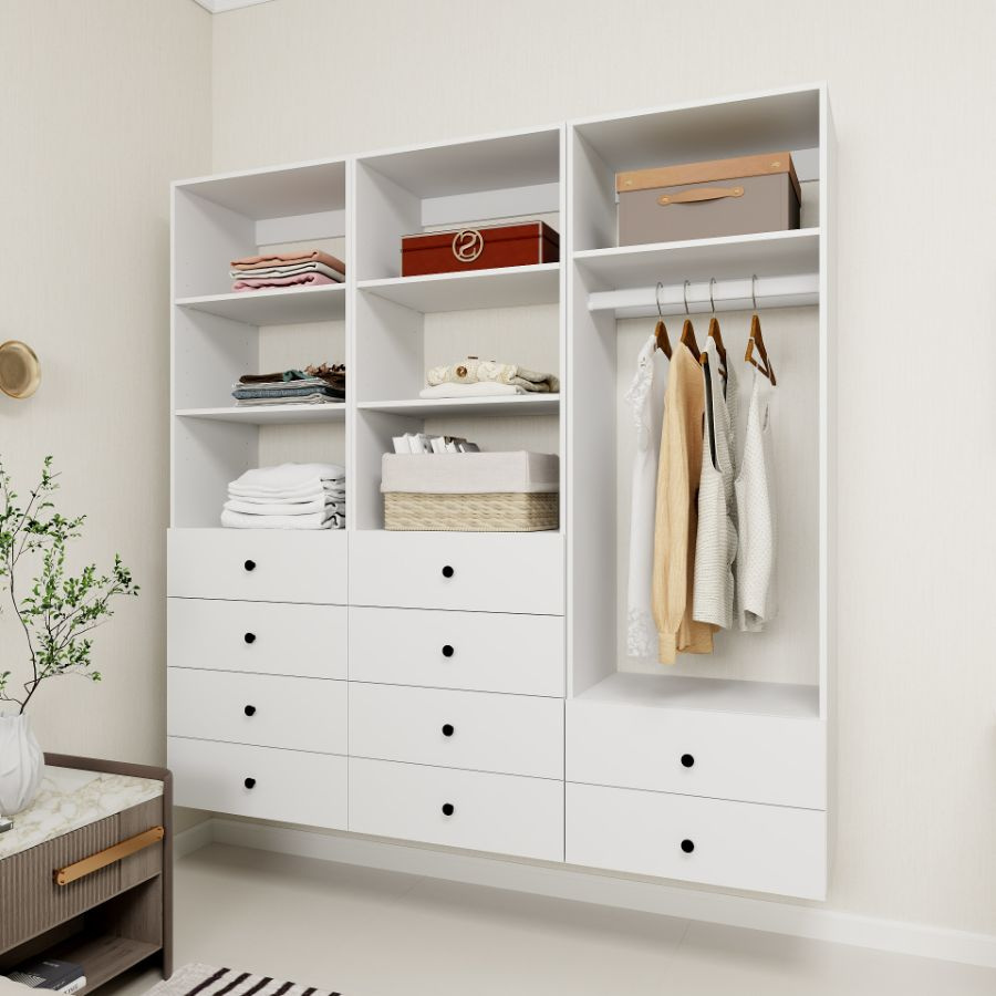 Simplify your storage needs with this versatile and stylish white modular wardrobe closet. It’s the perfect blend of function and fashion for your home.