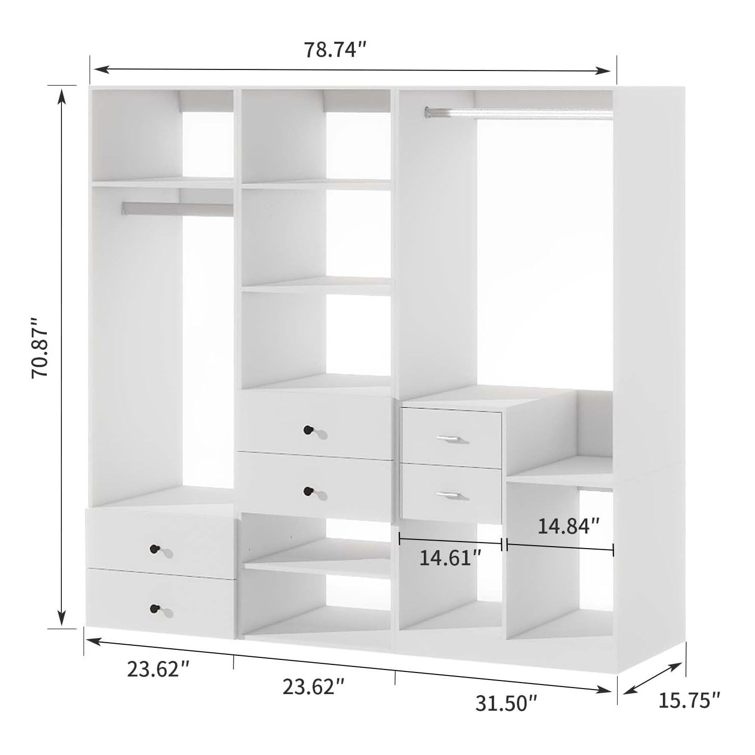 Livelylodge Modular Wardrobe Closet - Freestanding White Closet with Spacious Storage Shelves and Hanging Rods 70.86"W x 16.04"D x 70.86"H
