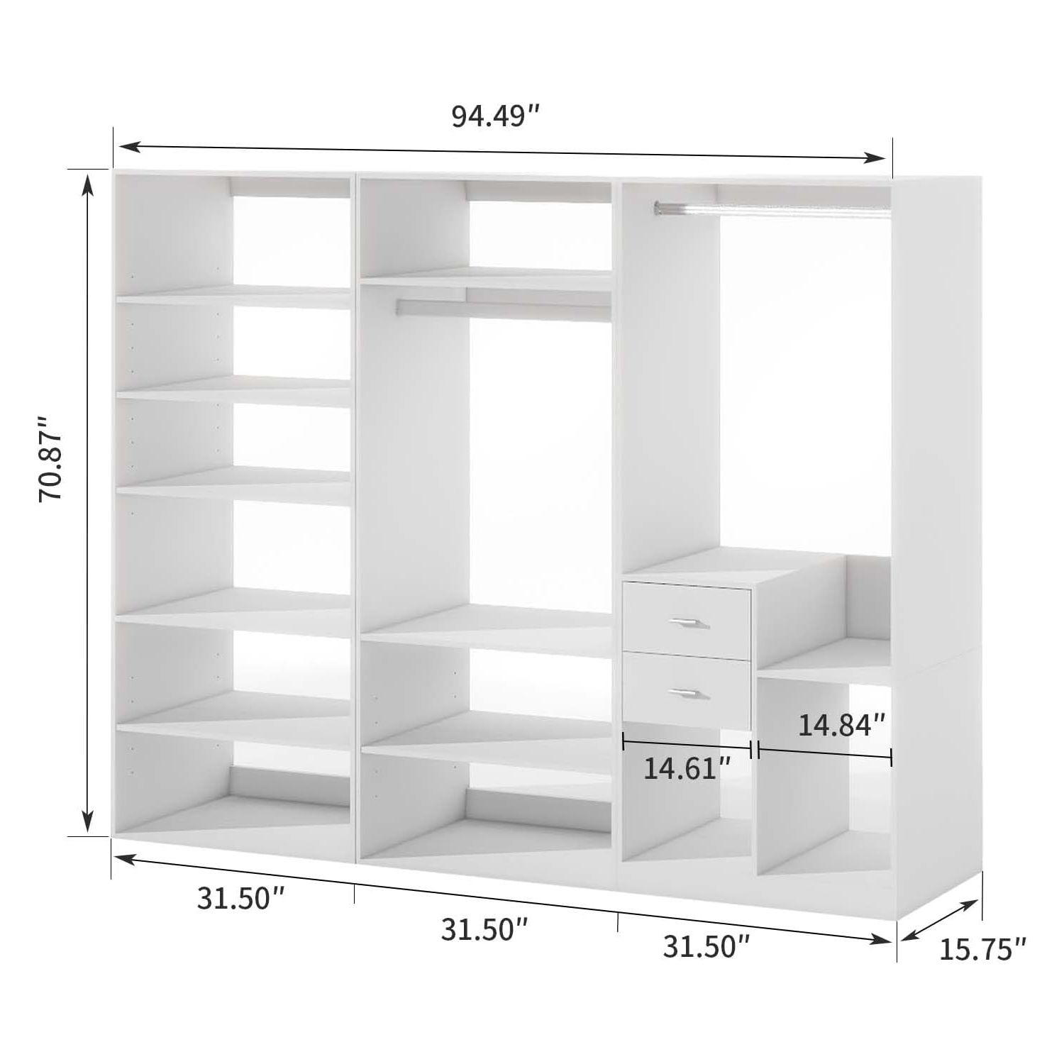 Livelylodge Modular Wardrobe Closet - Freestanding White Closet with Spacious Storage Shelves and Hanging Rods 70.86"W x 16.04"D x 70.86"H