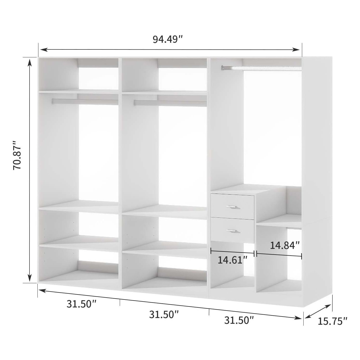 Livelylodge Modular Wardrobe Closet - Freestanding White Closet with Spacious Storage Shelves and Hanging Rods 70.86"W x 16.04"D x 70.86"H
