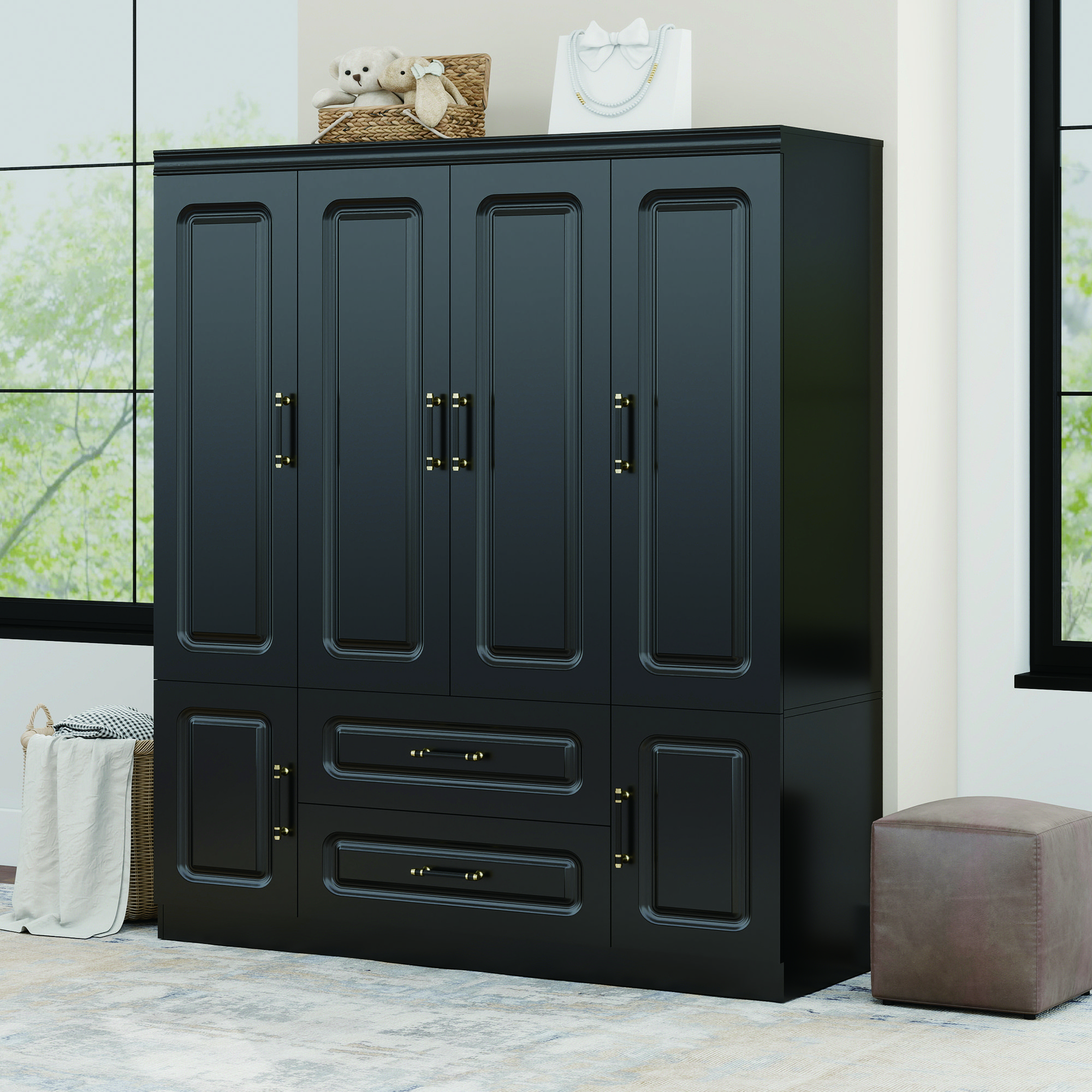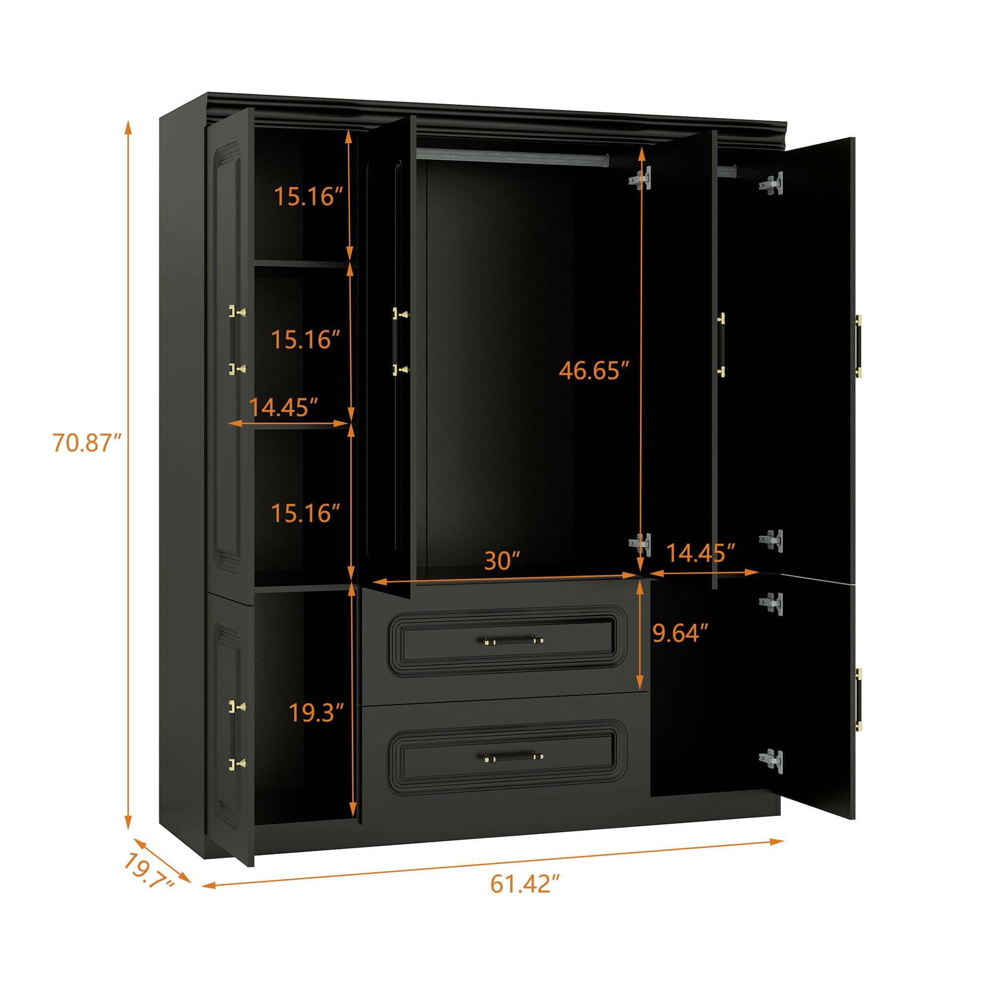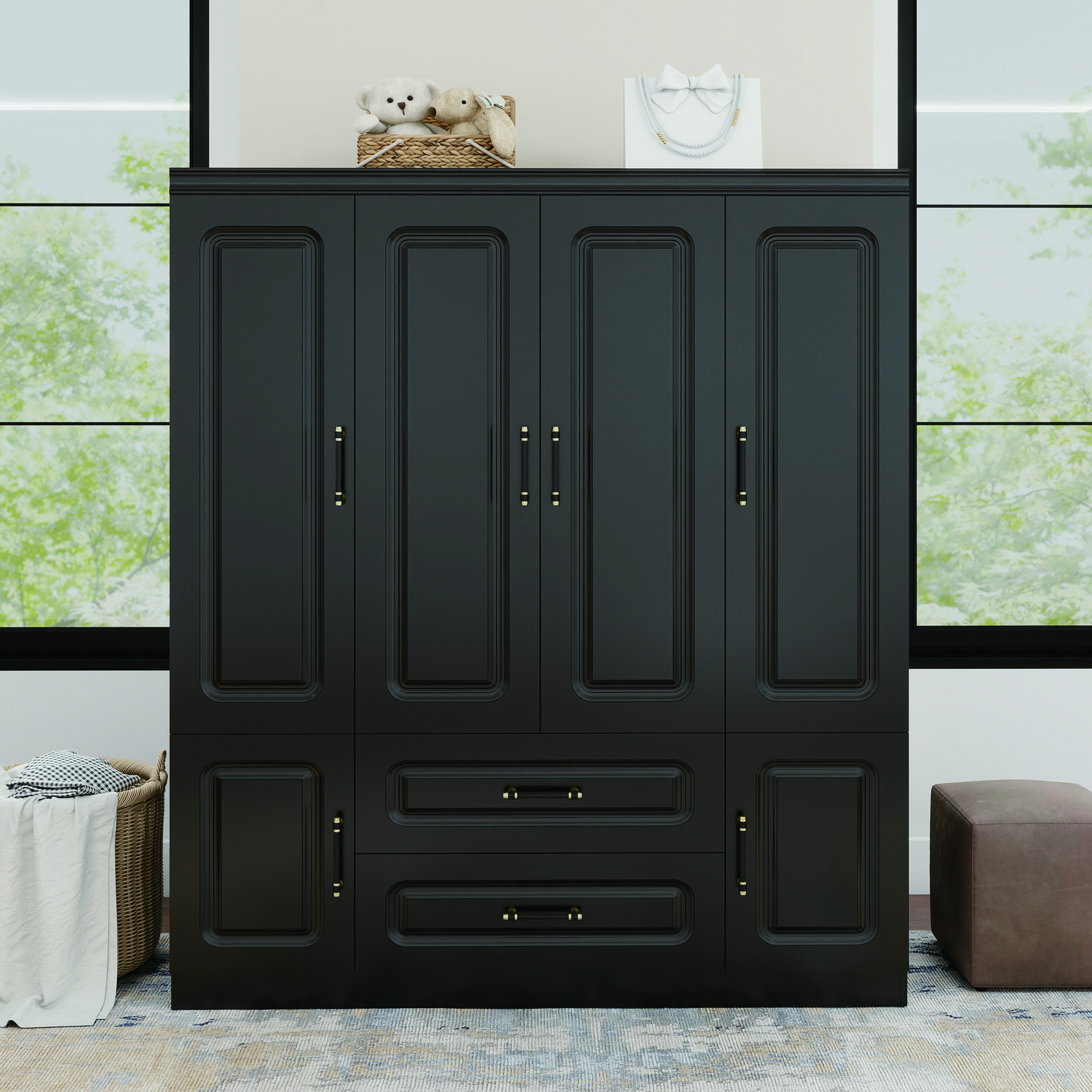 Livelylodge Modern Black Wardrobe with Large Storage Capacity – 4 Doors, 2 Drawers Livelylodge Modern Black Wardrobe with Large Storage Capacity – 4 Doors, 2 Drawers Livelylodge Modern Black Wardrobe with Large Storage Capacity – 4 Doors, 2 Drawers