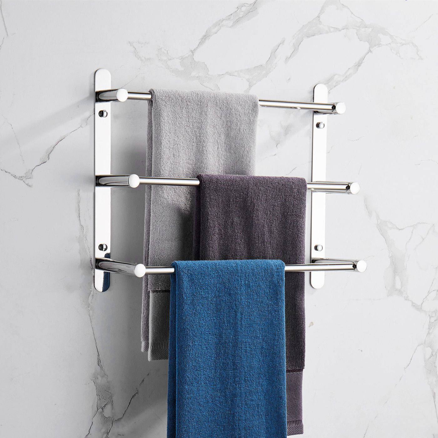 *[Well and NEW Designed]Practical and Space-saving design,Three Stagger Layers Bars Perfect for towels going dried quickly and more hygiener..Classical and Traditional Design in Bright Polishing Silver to suit All Home Styles.