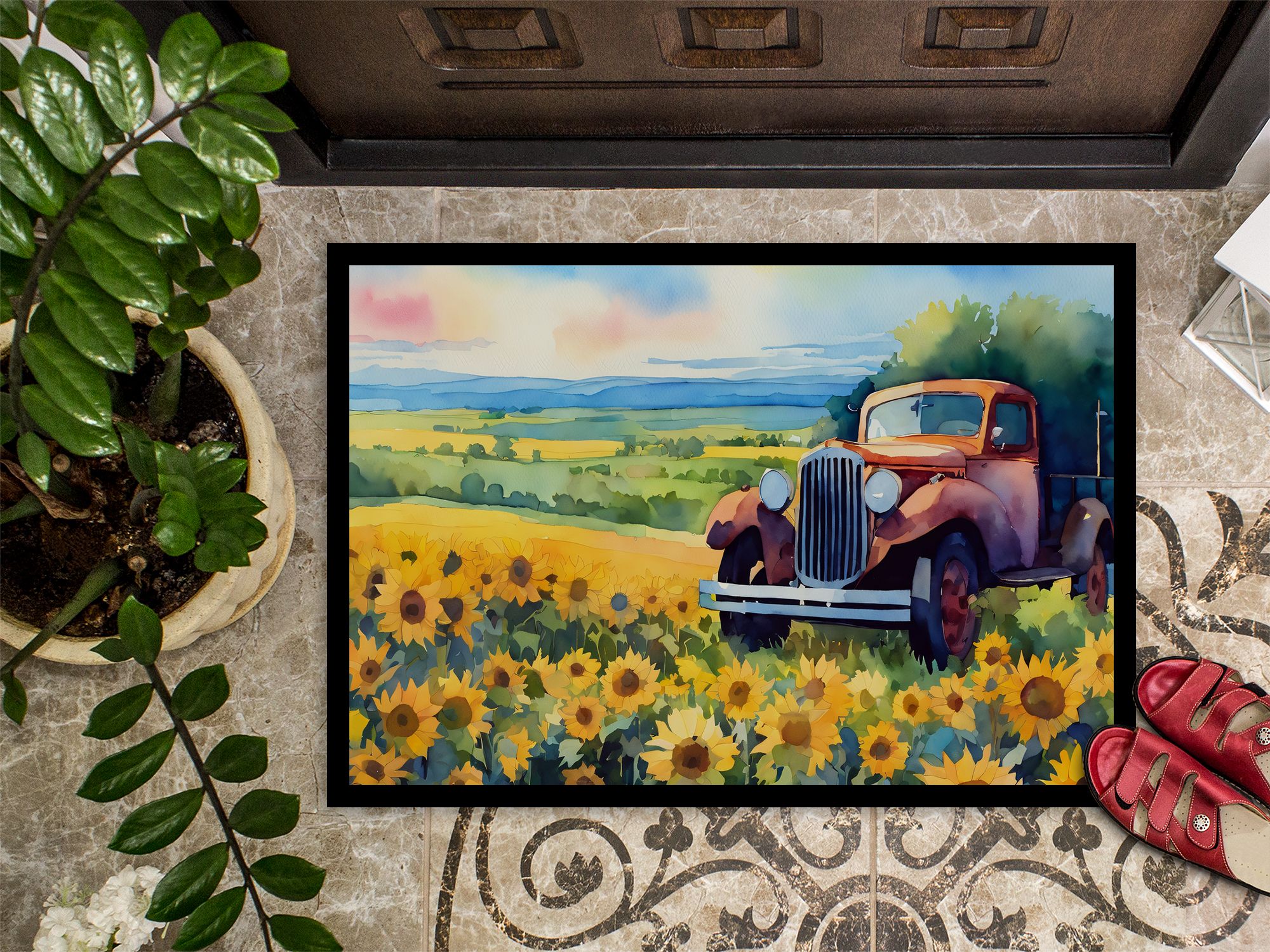 NEW Kansas Sunflowers in Watercolor Doormat Front Door Mat Indoor Outdoor Rugs for Entryway, Non Slip Washable Low Pile, 18H X 27W