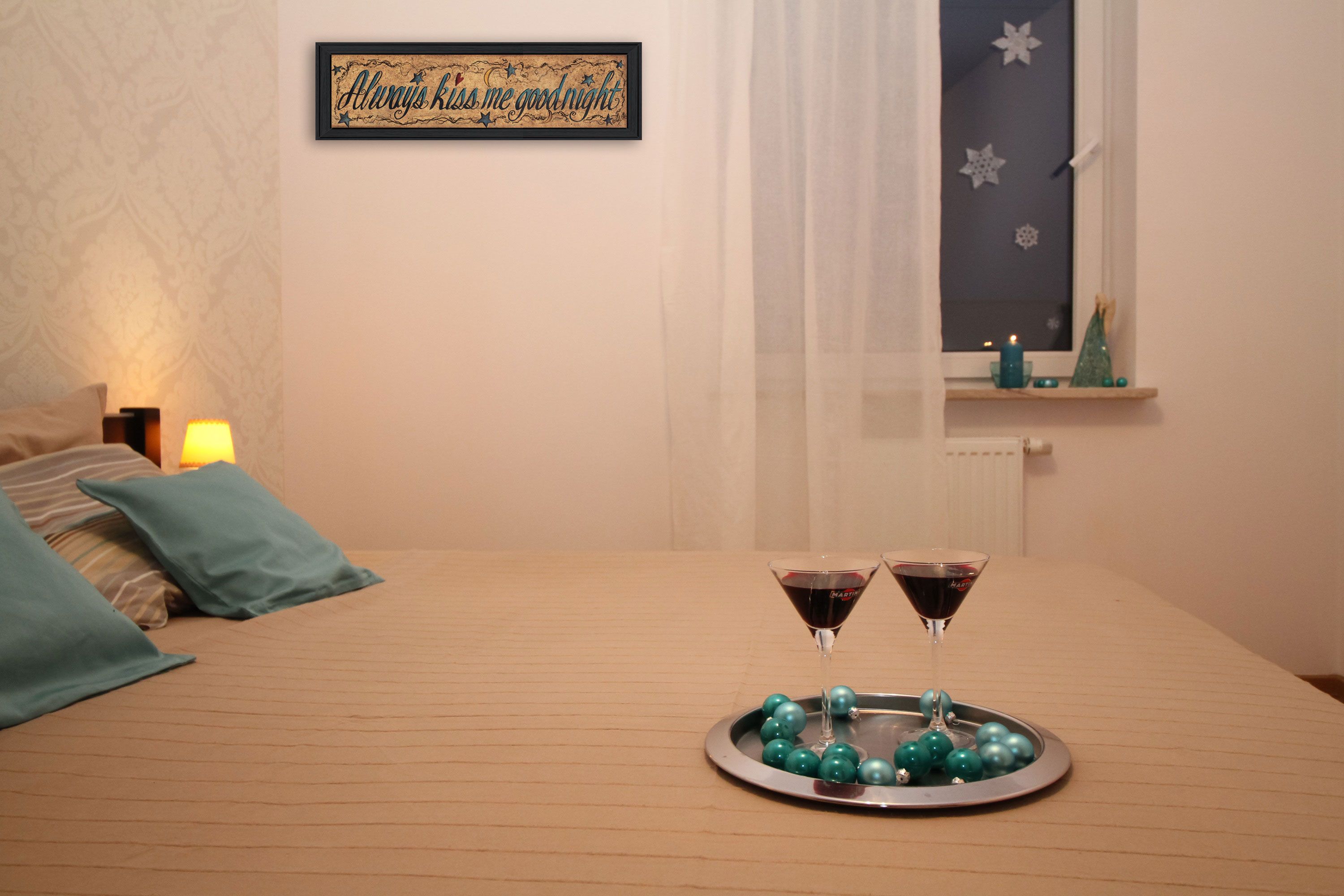 "Always Kiss Me Goodnight" By Gail Eads, Printed Wall Art, Ready To Hang Framed Poster, Black Frame
