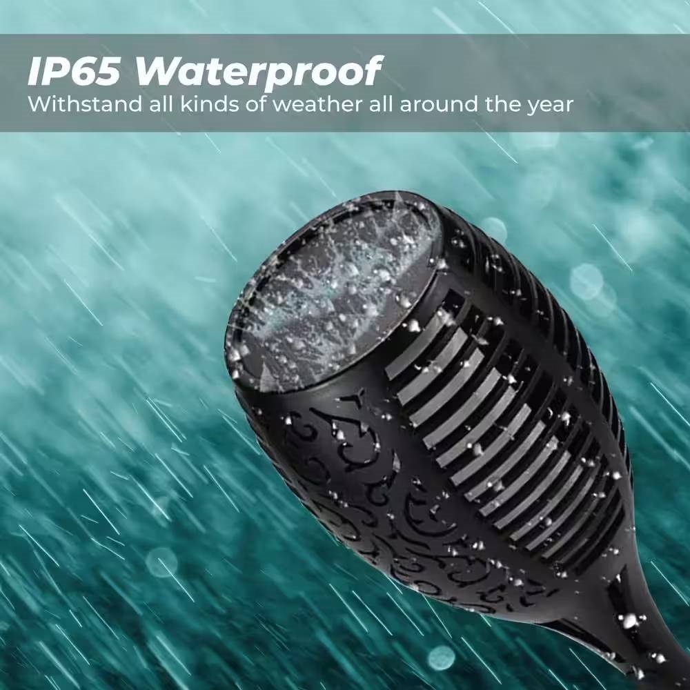 • IP65 WATERPROOF: Set of 4 - Outdoor Solar Lights LED Tiki Torch Polynesian Style Path Lighting are waterproof and are constructed from high-quality ABS material. It is designed to withstand major weather during different seasons. Please do NOT worry about the rain, snow or even the high temperature.