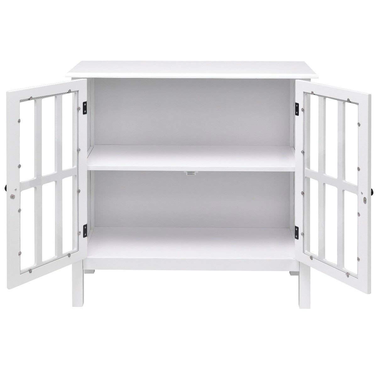 • With 2-tier shelf and 2 tempered glass doors design, you can surprisingly place your any items in or on it as you like